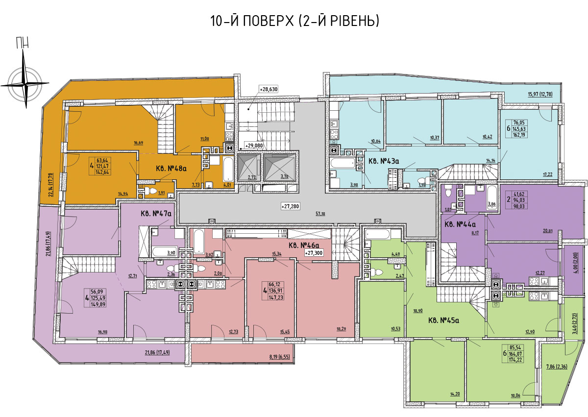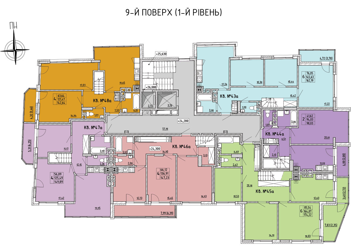 - Будинок має підземний паркінг та громадські приміщення на першому поверсі;
